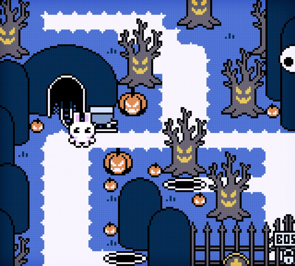 rougue-lite shooter. Play as the Doomslinger, a mysterious gunslinger. Venture into a creepy dungeon and defeat all kinds of spooky monsters like ghosts, zombies and pumpkin monsters.